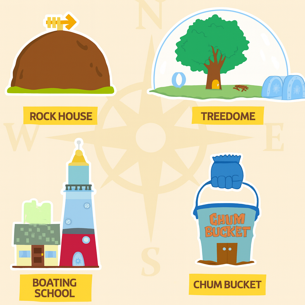 And as a surprise, we added two small but iconic builds: Mrs. Puff’s Boating School and Plankton’s Chum Bucket.