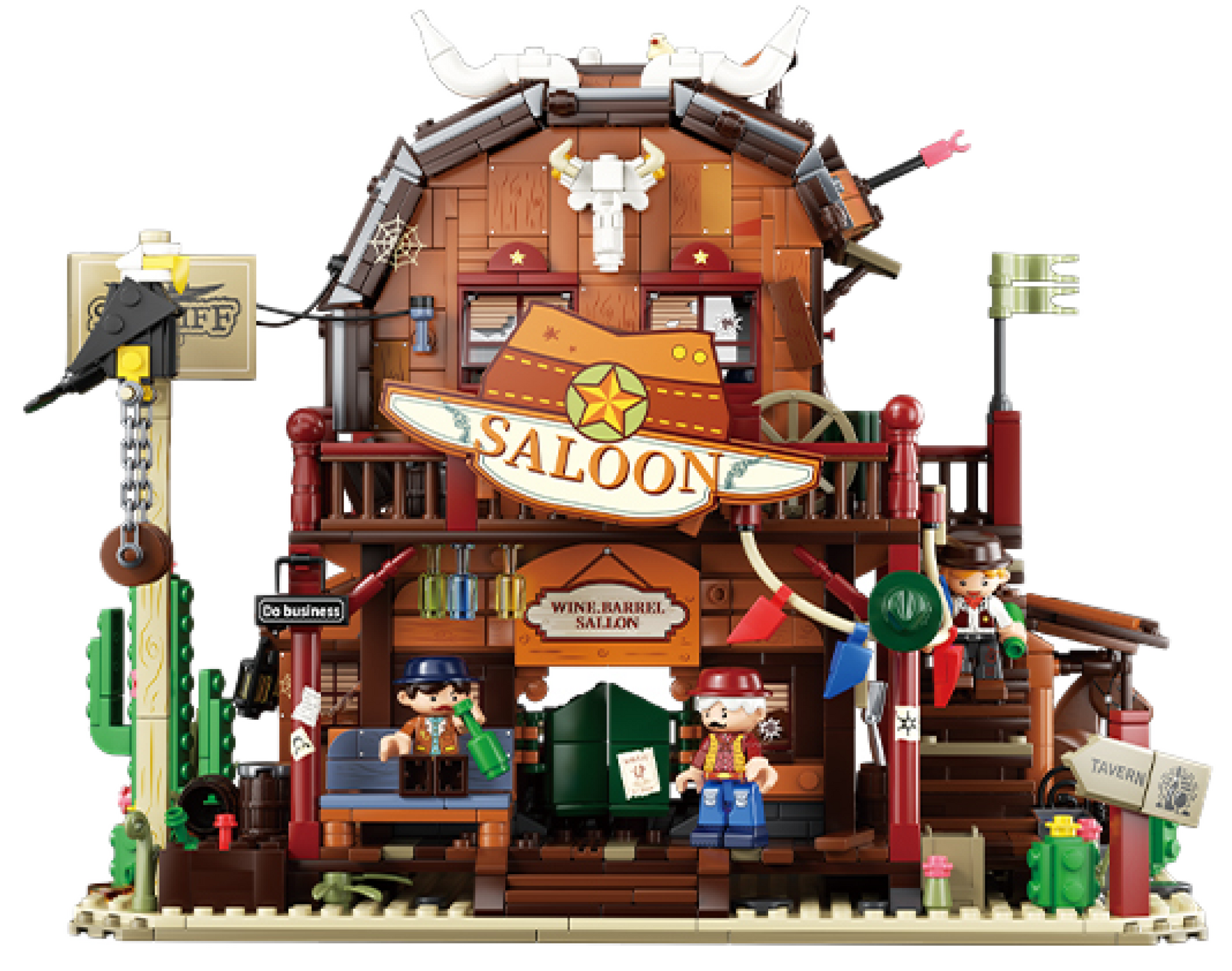 Saddle up for a brick-built adventure in the Wild West Saloon, a two-story barrel-shaped tavern set in the heart of the American frontier. This richly detailed model captures the lawless charm of a desert boomtown with over 20 hidden storytelling easter eggs and 4 exclusive minifigures.