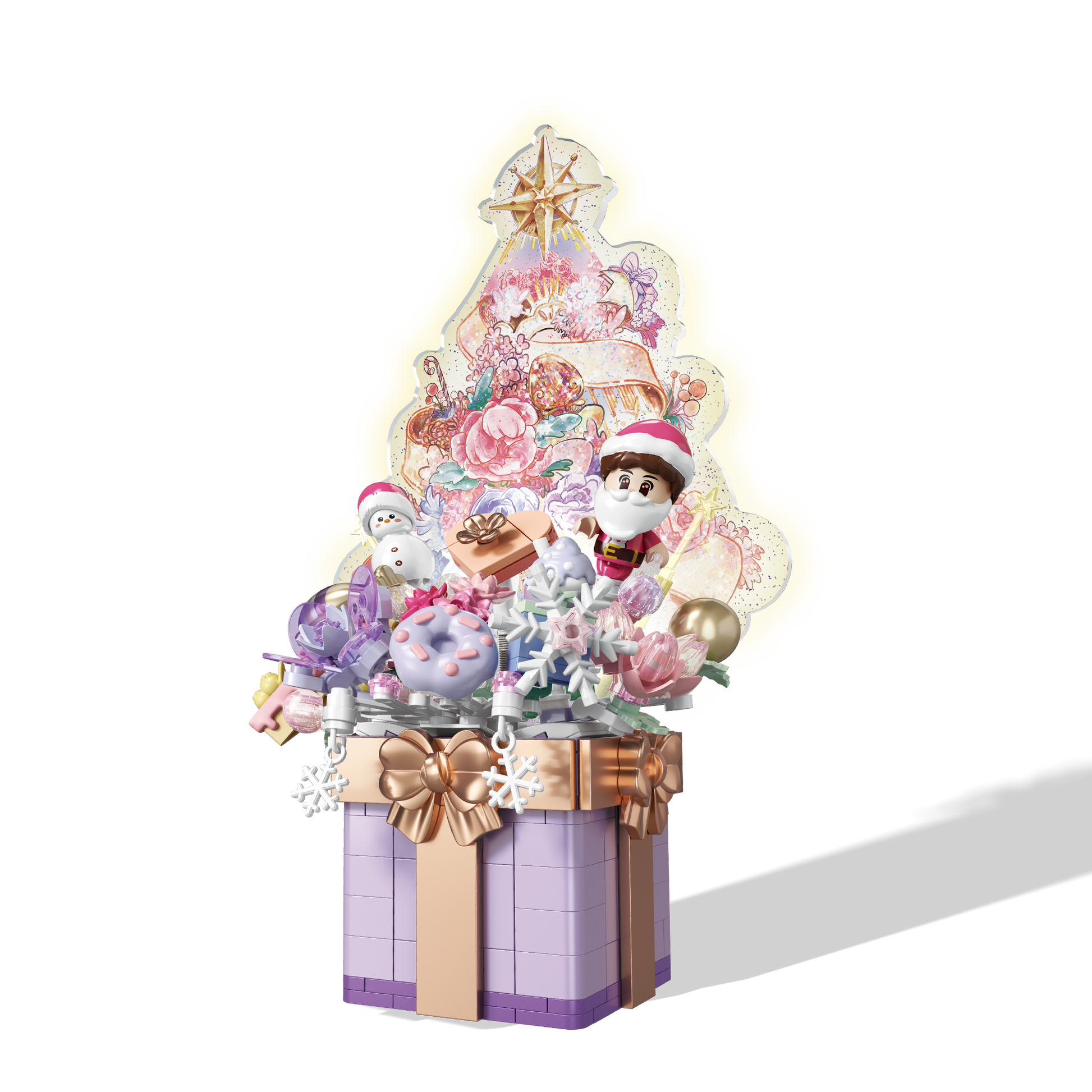 Celebrate the season with an elegant floral fantasy. Floral Gift Wish transforms a classic holiday tree into a dreamy bouquet of pink roses, shimmering ornaments, and frosty charm—set atop a golden-ribboned gift box. Perfect for expressing warmth, gratitude, and heartfelt wishes during the most magical time of the year.