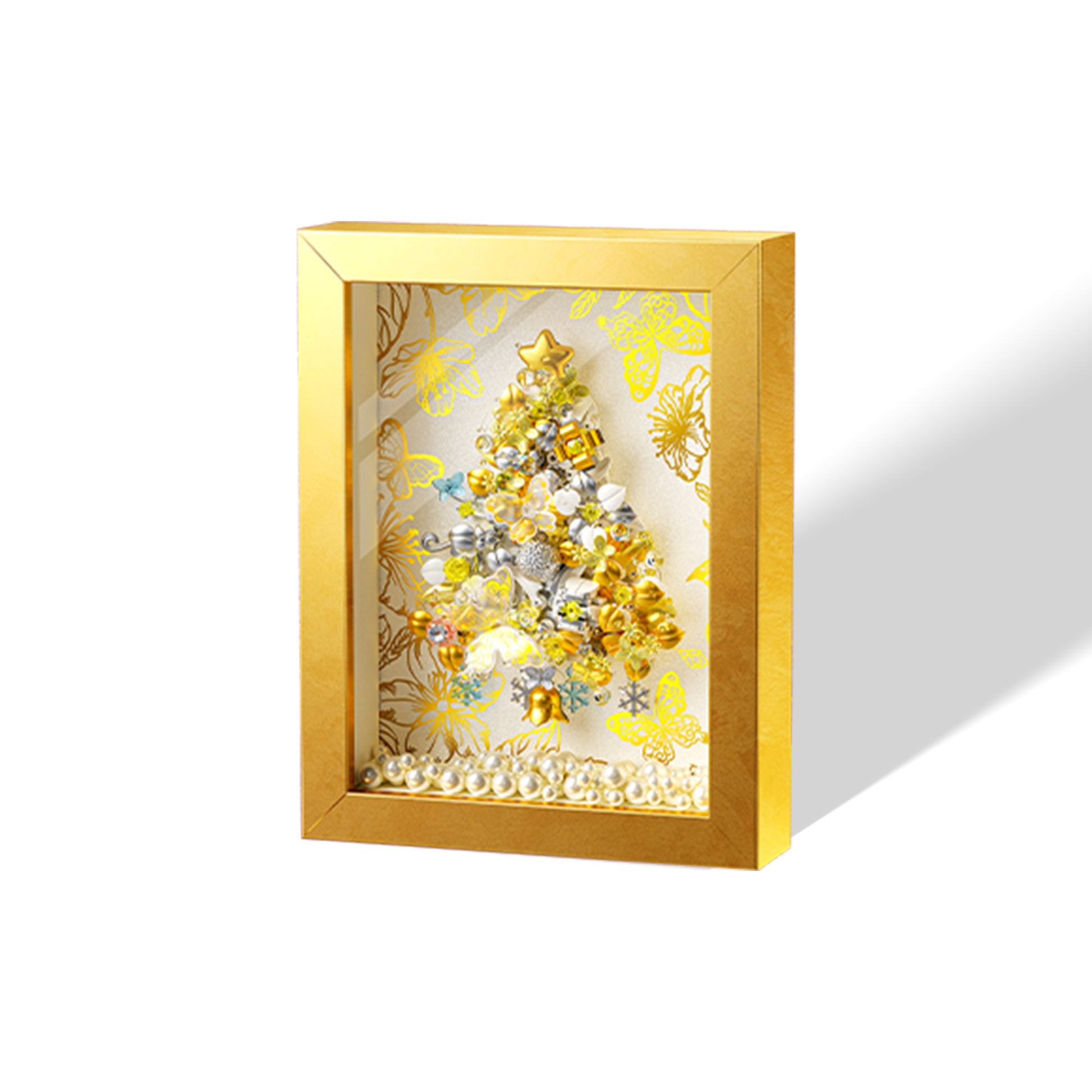 Celebrate the season with Platinum Star, a radiant Christmas-themed art box from the AreaX Holiday Collection. This shimmering diorama features a golden tree sculpted from layered bricks, adorned with metallic ornaments, twinkling lights, and festive motifs. Whether placed on a mantel or given as a gift, it brings warmth, elegance, and a touch of wonder to any space.