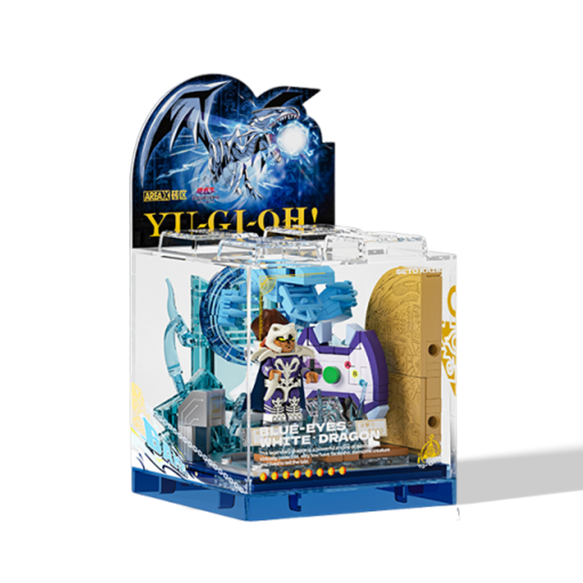 Step into the Duel Tower and command the might of Blue-Eyes White Dragon with Seto Kaiba, the iconic rival from the Yu-Gi-Oh! universe. This collectible diorama captures Kaiba mid-battle, set in a transparent showcase that lights up from the base and features scene-accurate details for maximum visual impact.