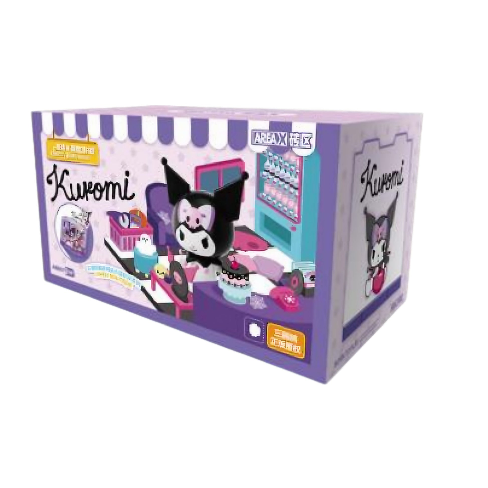 • Includes iconic Kuromi elements such as bat-ear wall decor and dark-cherry desserts