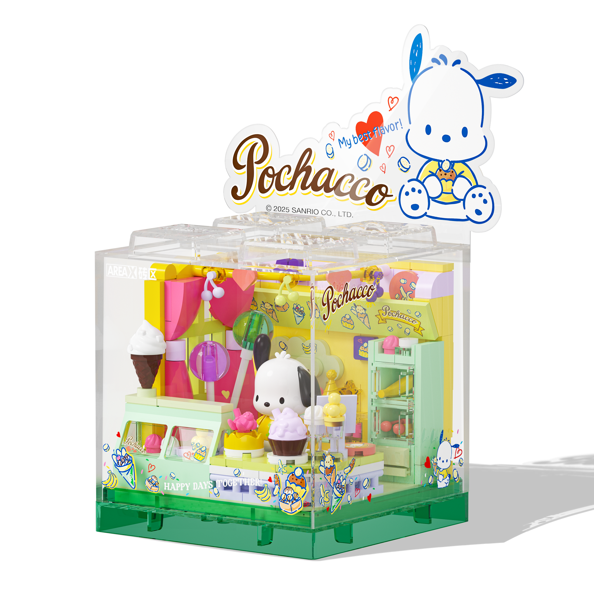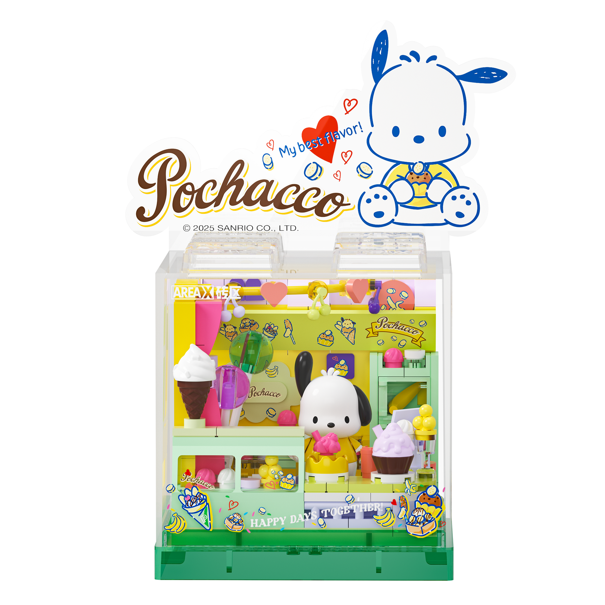 Cool down with a scoop of sweetness at the Sanrio Sweet Box – Pochacco’s Ice Cream Stand. Bursting with icy charm and pastel flair, this cheerful dessert corner brings the joy of summer treats to your collection—served with love by Pochacco himself.