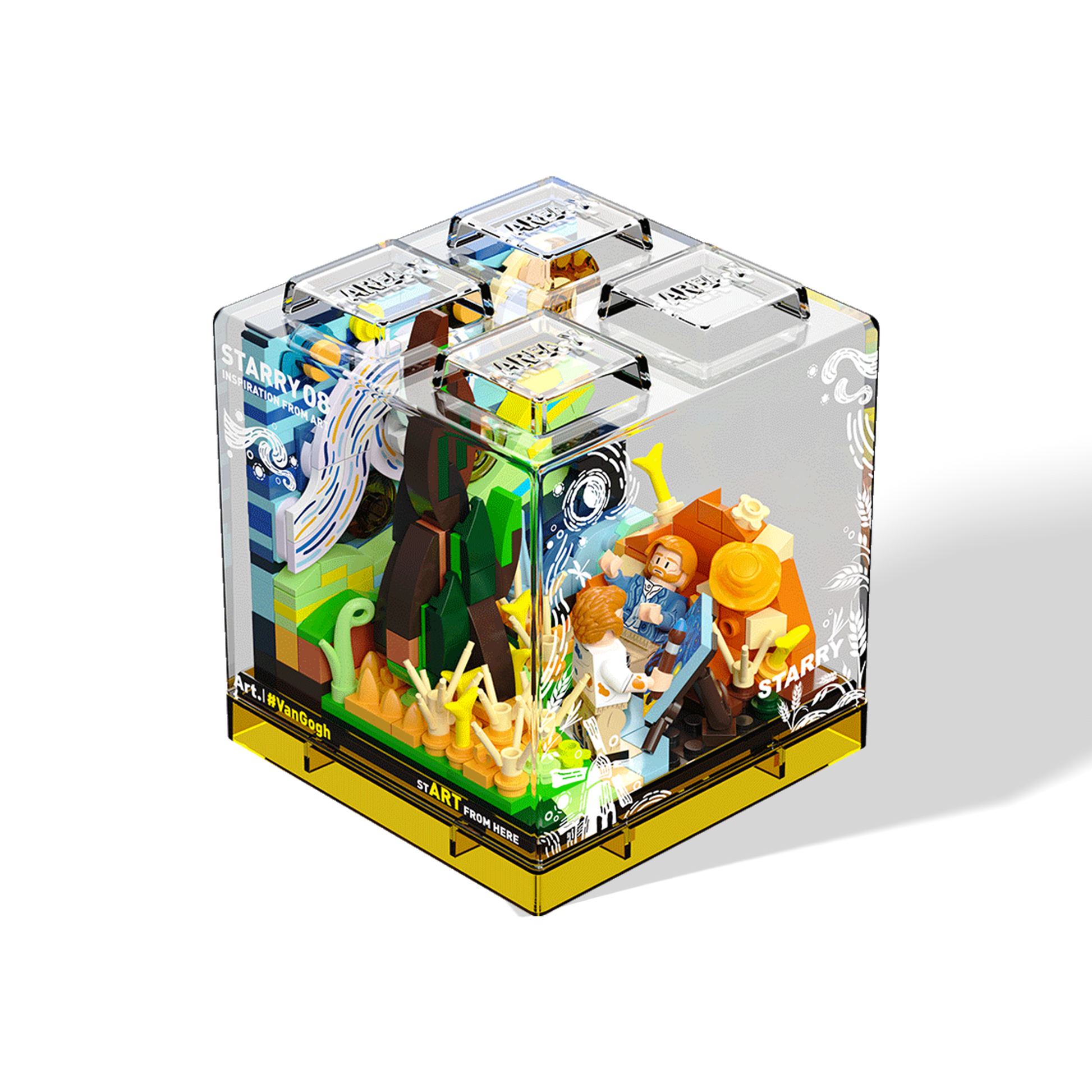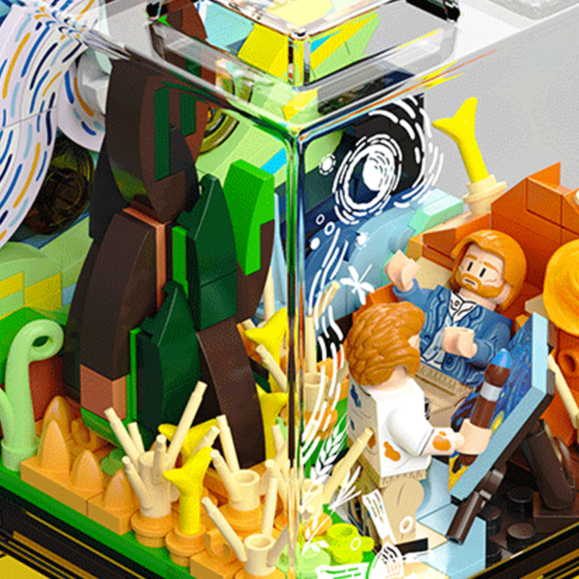 Lose yourself in swirling skies and golden fields with Starry (Van Gogh ver.), a poetic homage to the emotional brilliance of Vincent van Gogh. Reimagined in miniature bricks, this scene blends the turbulence of The Starry Night with the quiet persistence of artistic creation.