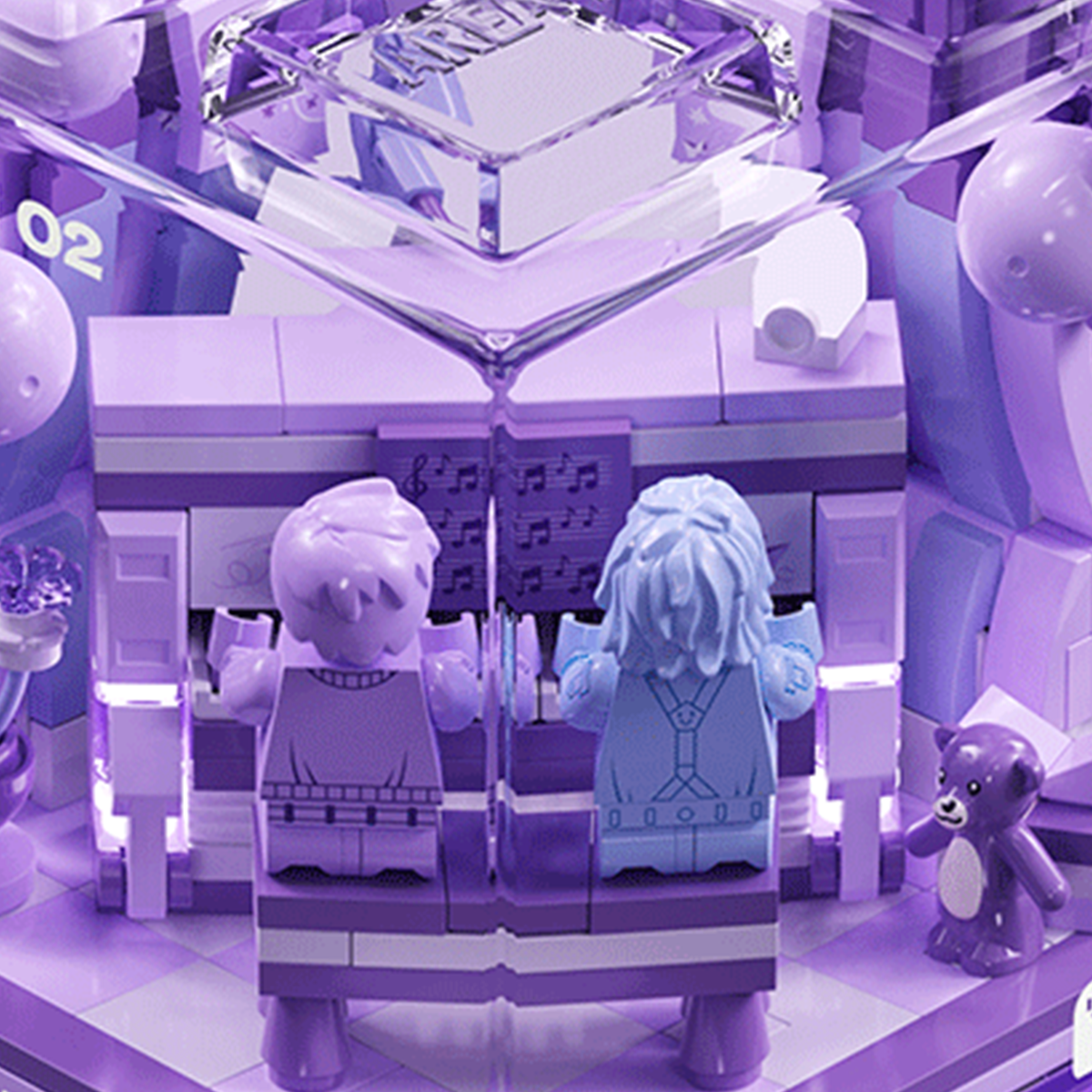 • Translucent purple display cube with poetic design