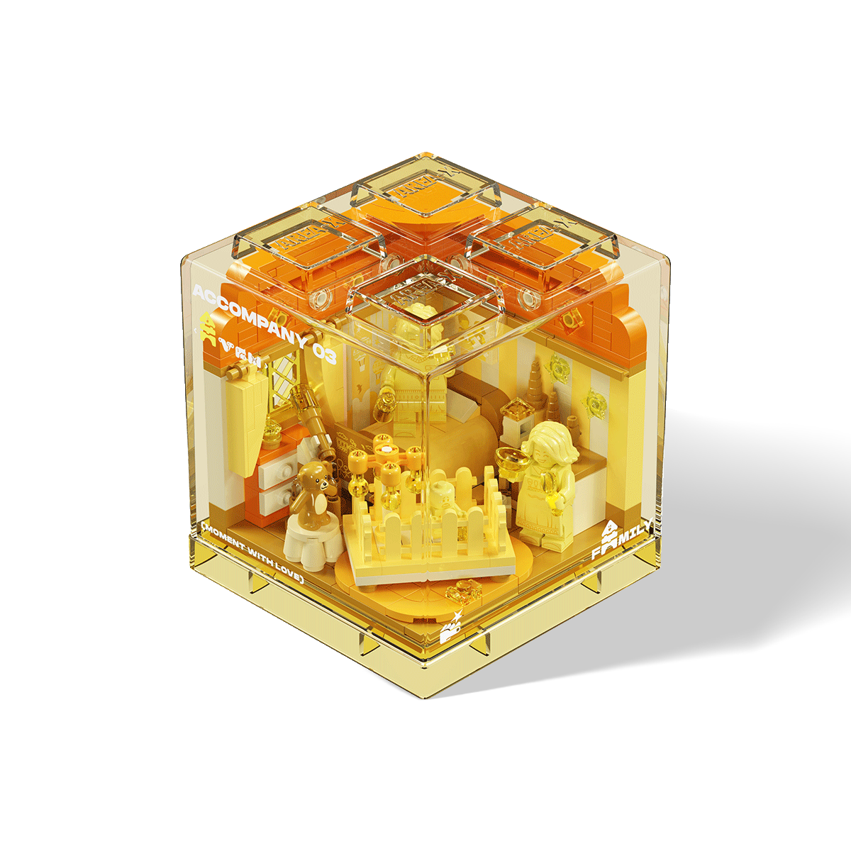 Love has many faces—romantic, platonic, familial, and personal. The Moment with Love – Complete Bundle collects all four scenes in a single heartfelt set. Whether it’s a shy glance, a shared silence, a newborn’s first smile, or a solo journey toward light, each vignette captures an emotion worth remembering. With color-themed translucent cubes and poetic design, this bundle is perfect for gifting, collecting, or treasuring moments of connection.
